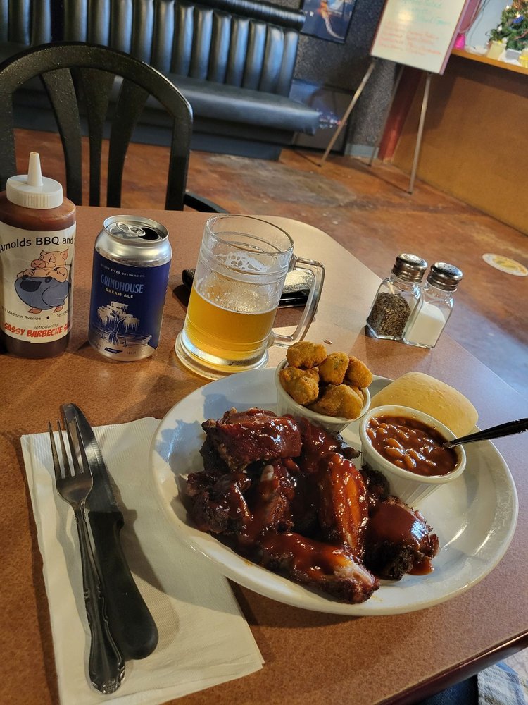 Arnold’s BBQ & Grill offers amenities such as Takeout, Delivery, Wheelchair Accessible, Pets Welcome, Outdoor Dining, Outdoor Parking, Accepts Contactless Payments, Takeout, Delivery, Wheelchair Accessible, ensuring a comfortable and convenient experience for clients.